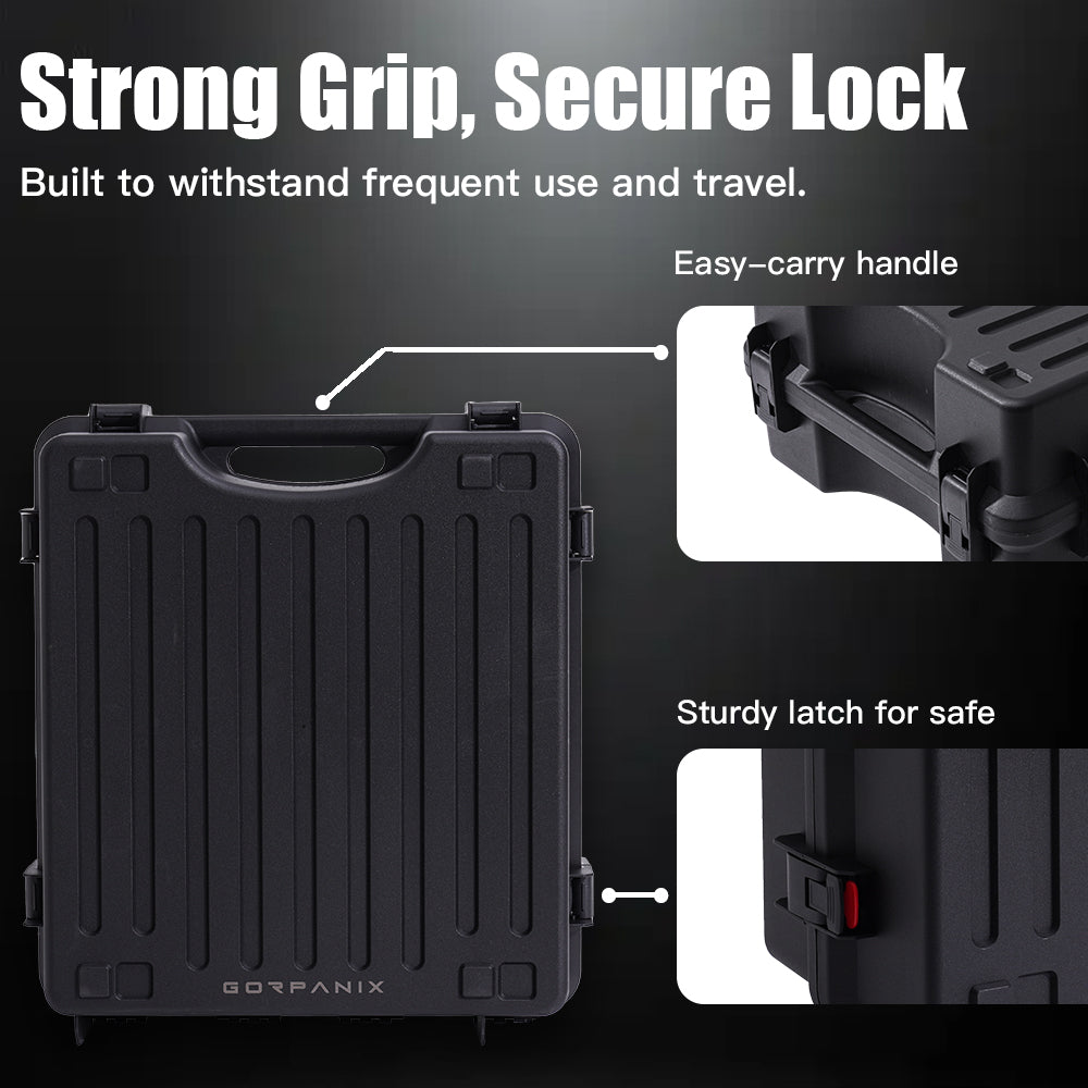 High-density polypropylene for impact resistance, moisture protection, and climate stability. Foam padding and hard shell offer top-tier protection for your gear.